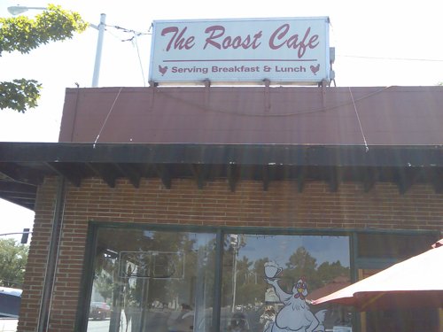 In the morning when sunlight through the window reflect on my face made me wake up that the feeling is comfortably. Usually in weekend morning that my sister boyfriend always cook different breakfast for us. He really is a great guy who can do anything for my sister. But this morning my sister said we are going to a popular restaurant for brunch. We drive my sister car go to restaurant. Maybe is Sunday that some popular restaurants was full of people. So we cannot but continue to find other restaurants. Finally we found a restaurant which is popular in Chico. Most of the people like stayed with there enjoyed breakfast in weekend. The building have sticked a ugly chicken post.....^^I just to have a look what!!!!!!!!!!!! Everyone food is near 9 dollars that is so horrible.